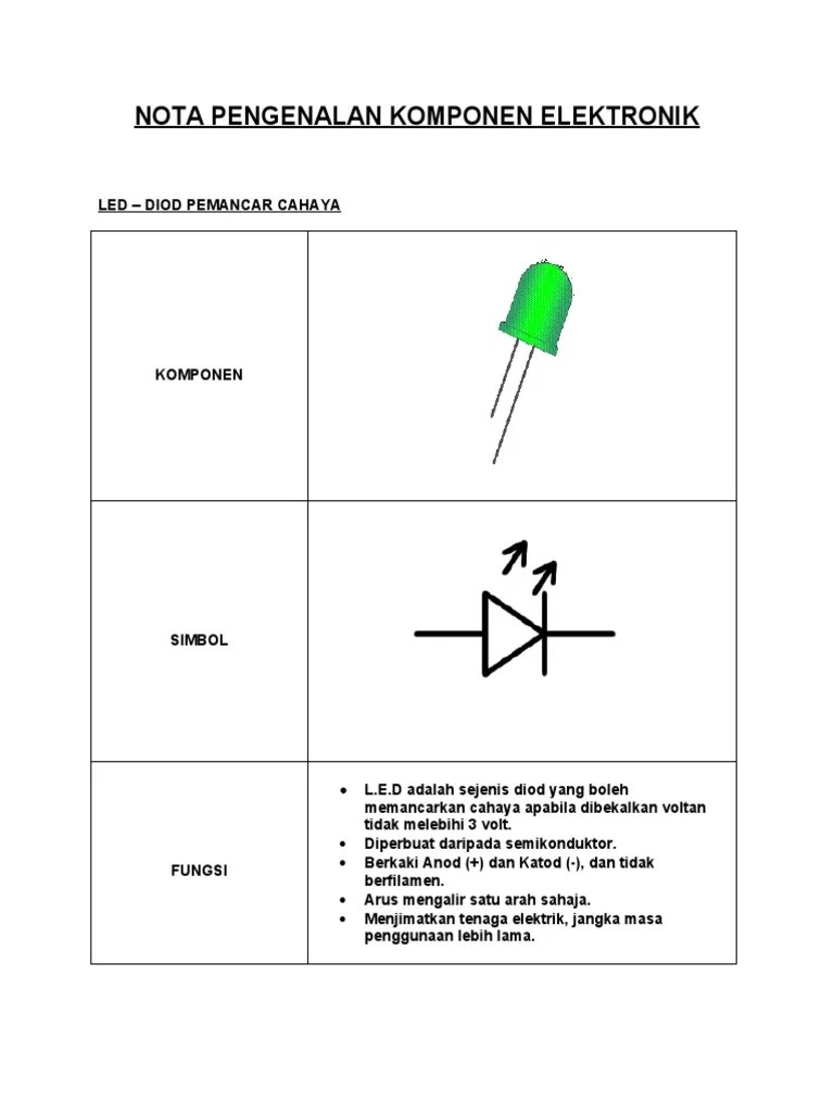 Diod pemancar cahaya (l.e.d0 · mohd saiful · outline. E = pemancar (emitter) buzzer. B = tapak (base) iii. C = pemungut (collector) ii. L.e.d adalah singkatan bagi light emitting diode. Kalkulator, serta jam tangan (lihat senarai kegunaan isyarat ). Diod pemancar cahaya ( led ) adalah sumber cahaya semikonduktor dua. Komponen elektronik nama diod pemancar cahaya l e d simbol fungsi berfungsi menukarkan . Leuchtdiode (led), selten auch lumineszenzdiode (techn.) français : Diod pemancar cahaya adalah diod yang boleh menyala apabila arus elektrik mengalir melaluinya. Untuk diod pemancar cahaya bersinar tinggi hijau, . Diod pemancar cahaya atau led merupakan sejenis diod semikonduktor yang menghasilkan cahaya tidak koheren berspektrum sempit apabila dikenakan voltan .